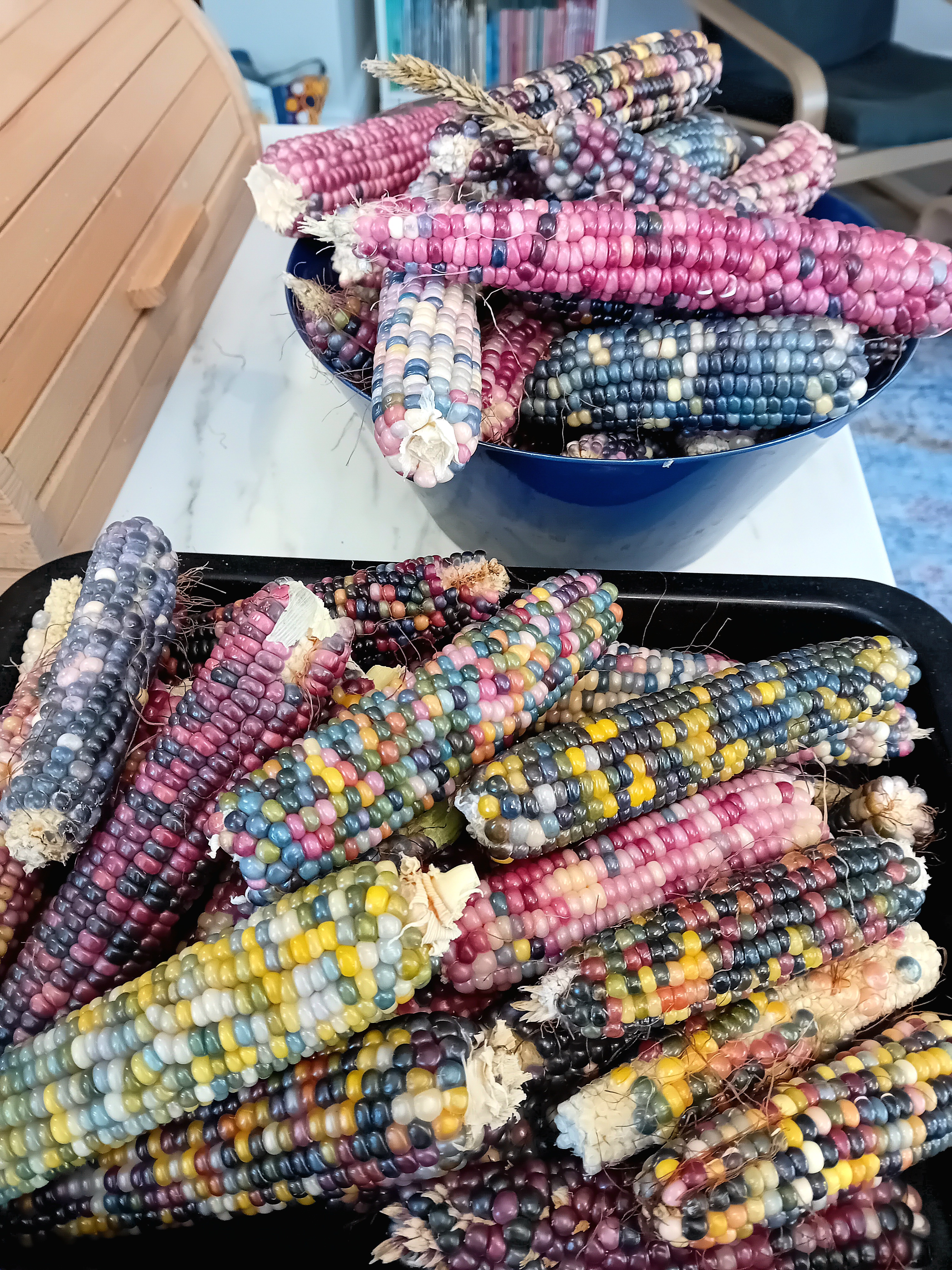I must have got really bored one day and decided to grow a corn field. But normal corn is too boring so I decided that I must grow Glass Gem popcorn instead. It is a corn stolen from the native Americans I think, which means it is not ideally suited to our climate.